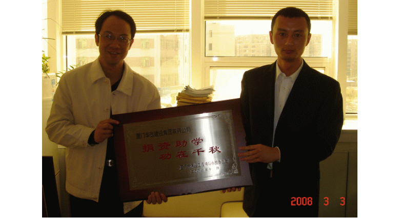 黃鶴麟副書記代表希望工程領(lǐng)導(dǎo)小組辦公室向我司頒發(fā)紀(jì)念牌匾,并向嚴(yán)總贈(zèng)送誠(chéng)信鼎。