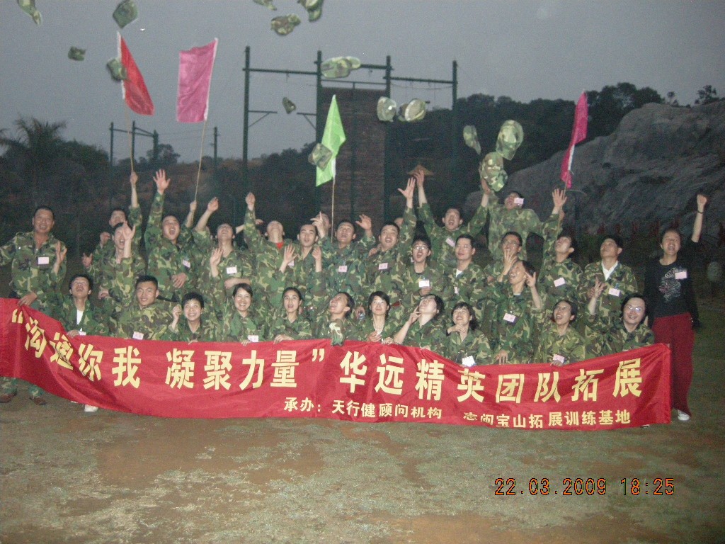 2009年3月21日、22日,廈門華遠集團全體員工至泉州寶山志閩拓展訓(xùn)練基地進行了為期一天的拓展訓(xùn)練。訓(xùn)后全體人員深刻體會到:不可能是可以變?yōu)榭赡埽灰i定目標,堅定信心,勇往直前,就能實現(xiàn)自我超越。通過此次拓展訓(xùn)練,加強了全體人員的執(zhí)行力、團隊凝聚力和企業(yè)向心力;同時也提高了團隊協(xié)作能力。培訓(xùn)結(jié)束時“華遠,我愛你!”響徹天空,帽子飛揚,全體人員歡呼雀躍久久不愿離去。帶著這份激情,全體華遠人將同舟共濟更好地展開2009年華遠的新征程。