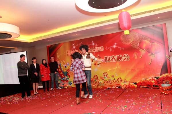 晚會(huì)在集團(tuán)公司俊男靚女的勁舞下開場,集團(tuán)各部門、各分公司、項(xiàng)目部集體錄制的《我們都是一家人》的祝福短片回首2011,董事長新春賀辭為我們指明了2012年努力的方向,一系列的評優(yōu)頒獎(jiǎng)活動(dòng),讓大家深刻的體會(huì)到一分耕耘一分收獲??袋c(diǎn)最大的娛樂環(huán)節(jié)讓大家笑鬧一片,加深了彼此間的溝通與了解。